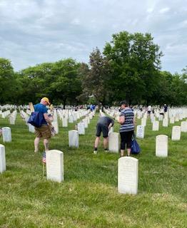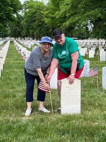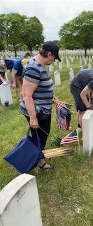 Flags for Fort Snelling — BFWC Club members placing flags on gravesites May 2023.